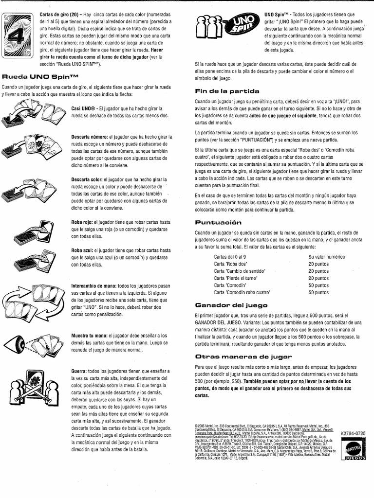 Mattel uno spin juego de mesa original. The game marketing uses the slogan the next revolution of the classic card game. gameloft made a video game adaptation in 2010. Una rueda uno spin y 112 tarjetas e instrucciones de uso. Uno de los jugadores deberá girar la rueda. Unlike in uno, there is a spin card, which allows you to spin the wheel provided in the box.